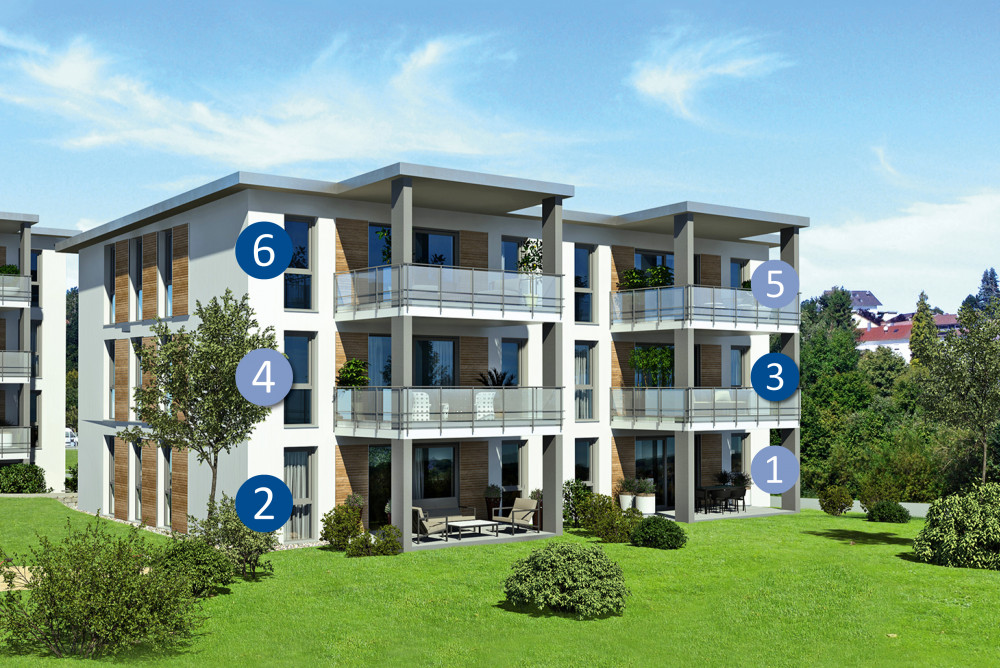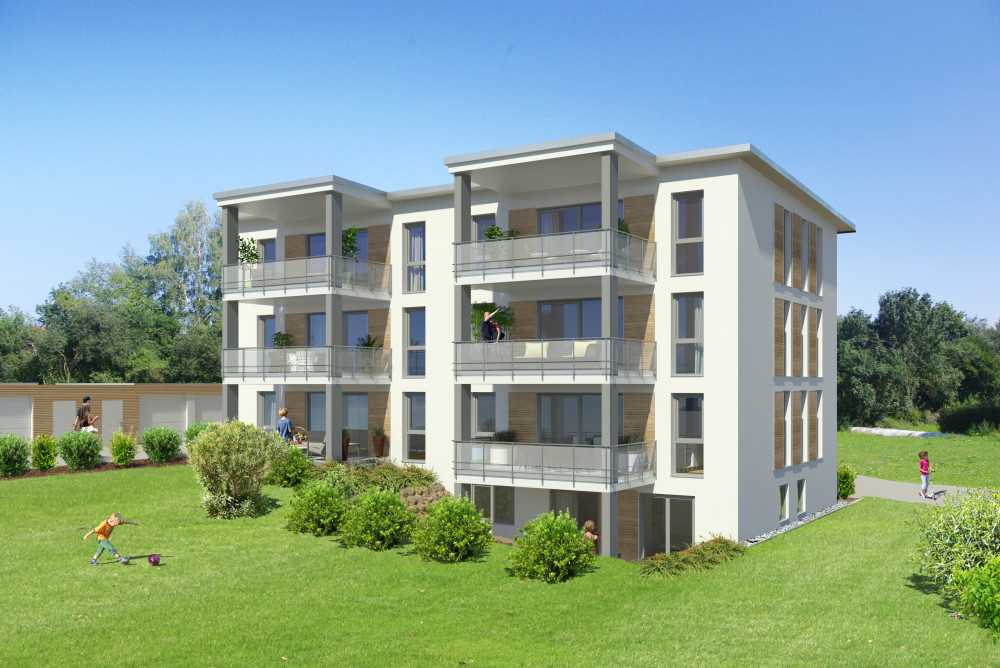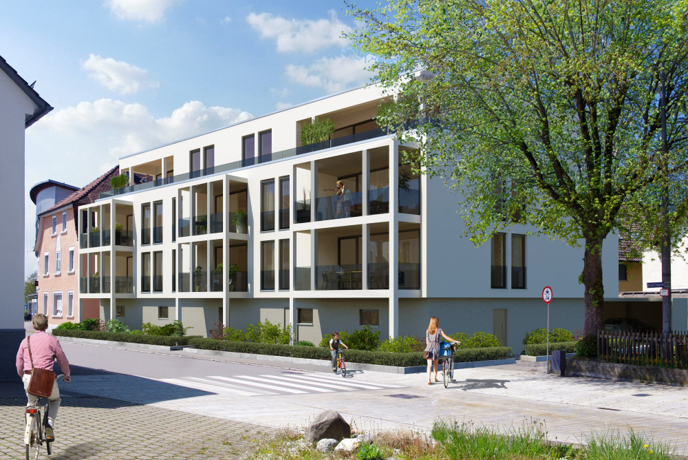 In absolut exponierter Innenstadtlage in Verlängerung zur Fußgängerzone werden ein modernes 8-Familien- sowie ein 3-Familienwohnhaus mit oberirdischen Garagen, Carports und Kfz-Stellplätzen neu errichtet. Es entstehen lichtdurchflutete und durchdachte 2-5-Zimmer-Wohnungen mit Wohnflächen von 65,96 – 122,93 m². Alle Wohnungen sind bequem über einen Aufzug erreichbar und verfügen über großzügige Süd-West Balkone und Dachterrassen. In den Erdgeschossen beider Gebäude ist neben den Garagen, den Technik- und Gemeinschaftsräumen auch für jede Wohnung ein Abstellraum vorgesehen.